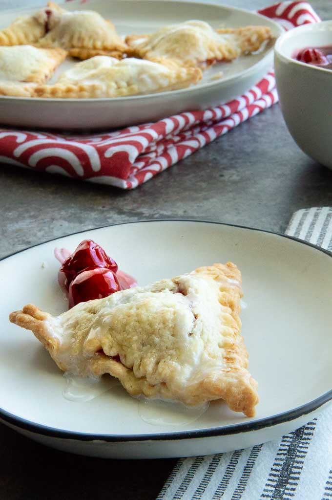 - I don’t have an airfryer can I still make these cherry pies? Yes. You can deep fry hand pies in hot oil for about 5 minutes per side until they are golden brown. Drain them on a paper towel and let them cool before drizzling them with the sugar glaze.