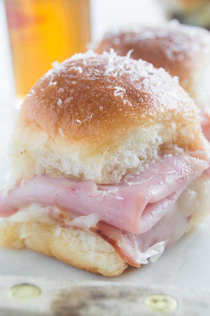 They work great for Super Bowl Party Sandwiches, a snack at work, or after school too. You can make them ahead and serve them at room temperature (although honestly, I prefer them warm just out of the oven so the cheese is really melty and the juices of the buttery sauce is still slathering everywhere!)