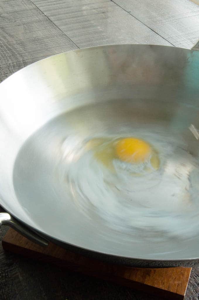- Crack an egg into a measuring cup making sure there is no shell in the cup. Once boiling reduce heat to a simmer. Using a slotted spoon swirl water. Then place measuring cup into the water continuing to swirl water as you add the egg. Once in, use a spoon to swirl water one more time so the egg doesnt stick on the bottom of the pan. Add 2-3 more eggs at a time and cook for 3 minutes total to get a perfect poached egg. See notes for baking eggs instead. (The swirling of the water makes sure it doesn't stick to the bottom but also gives you the nice oval shaped egg when done poaching.