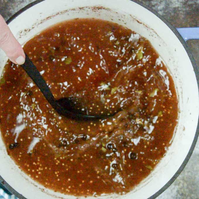 Place brined brisket and spices then add broth/water. Bring to a boil, then reduce to a simmer and cook for 3 1/2 to 4 hours until meat is tender. You can add veggies during the last hour of cooking so they don’t turn to mush.