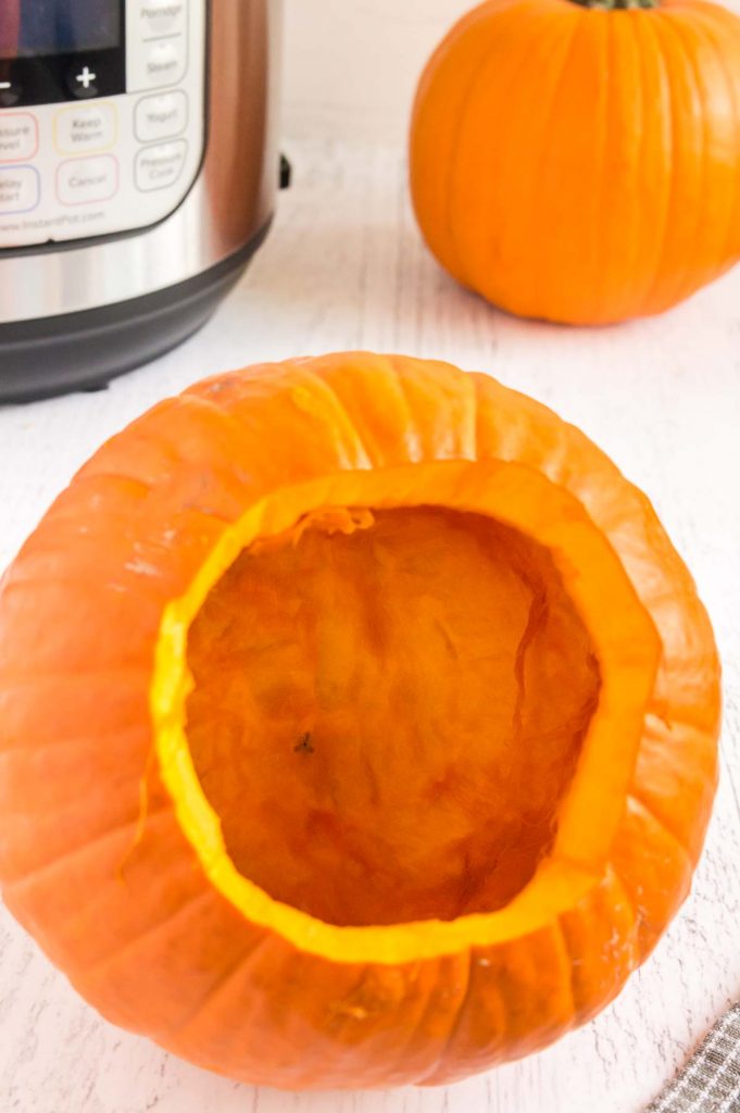 - Carefully release and allow any leftover steam to escape. Carefully remove the pumpkin as it will not only be hot but also delicate. It will probably come apart as you lift it up.