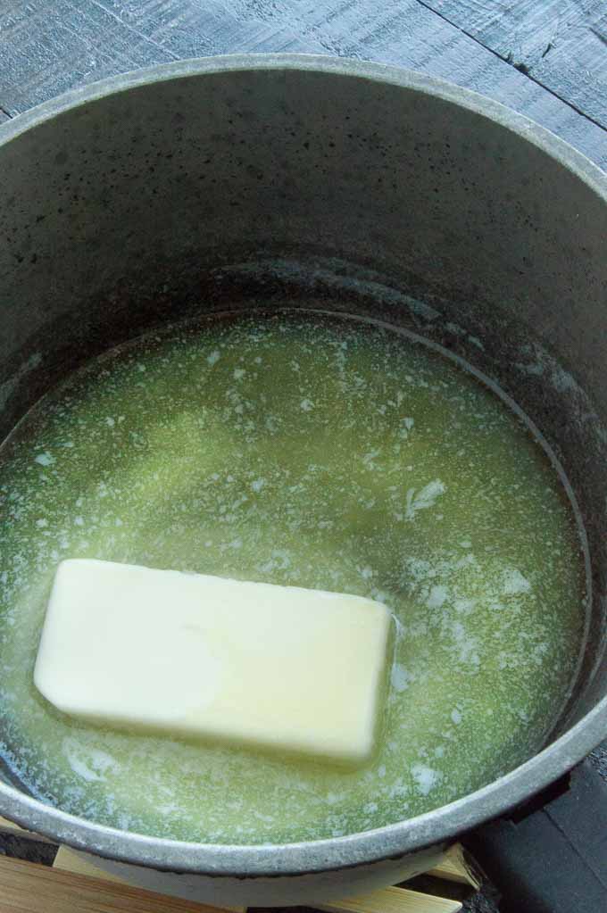 - In a sauce pan, melt the rest of the butter on medium high heat.