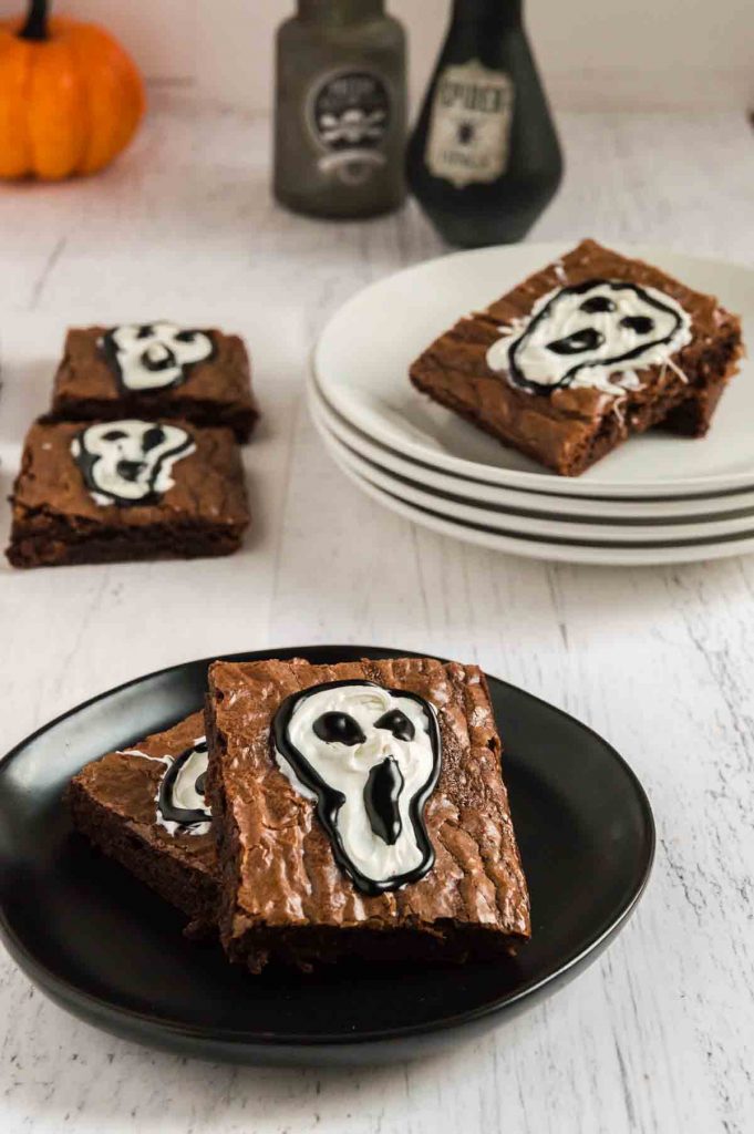 • Cut the brownies to the shape you want to serve before decorating. This will guarantee everyone who eats one will get a full screaming creepy skull on their brownie!